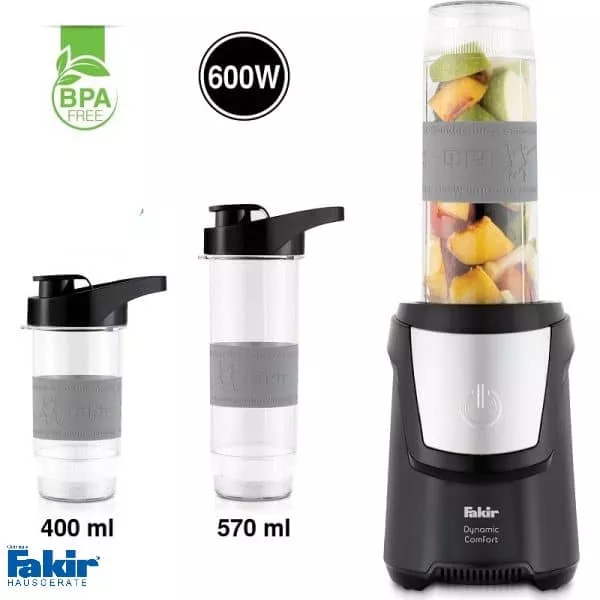 اسموتی ساز فکر مدل دینامیک یک دستگاه ایده آل برای تهیه یک نوشیدنی خوشمزه، سالم و مقوی است. این محصول تمام ویژگی های یک مخلوط کن کامل را داشته و آن را ارائه می کند. اسموتی ساز فکر با توان ۶۰۰ وات در زمان بسیار کوتاهی مواد را با هم مخلوط کرده و حتی در هزینه مصرفی شما نیز صرفه جویی می کند. این دستگاه شامل قسمت موتور، دو عدد بطری و سری آسیاب است. بطری با گنجایش ۴۰۰ و ۵۷۰ میلی لیتر برای تهیه و نگهداری نوشیدنی ها قابل استفاده هستند. هرکدام درب مخصوص به خود و گیره جهت حمل راحت تر دارند. دستگاه دارای چهار عدد تیغه از جنس استیل ضدزنگ است که می تواند قهوه، ادویه و حتی یخ را نیز خرد کند. در زیر دستگاه پایه های ضدلغزش سیلیکونی تعبیه شده که از تکان خوردن حین کار جلوگیری می کند. کلیه قسمت های محصول فاقد مواد خطرناک BPA هستند و هیچگونه ضرری برای انسان ایجاد نمی کنند.